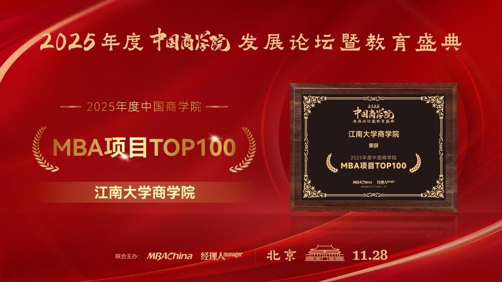 • 江南大學商學院斬獲“2025年度中國商學院MBA項目TOP100”等多...2025-12-01